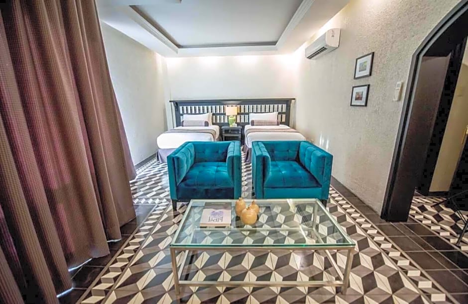 Features a private patio, a seating area and a bathroom with shower. The kitchenette includes a fridge, coffee maker and 2-burner stove.
